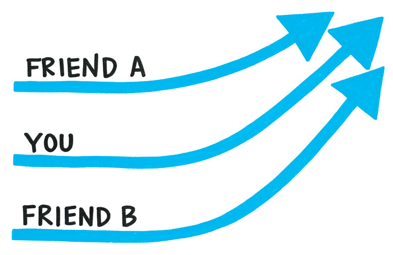 Use this diagram of arrows going the same direction and trending upward to visualize you and two core friends moving forward and upward as you get closer to Jesus and his maturing version of you in the future.